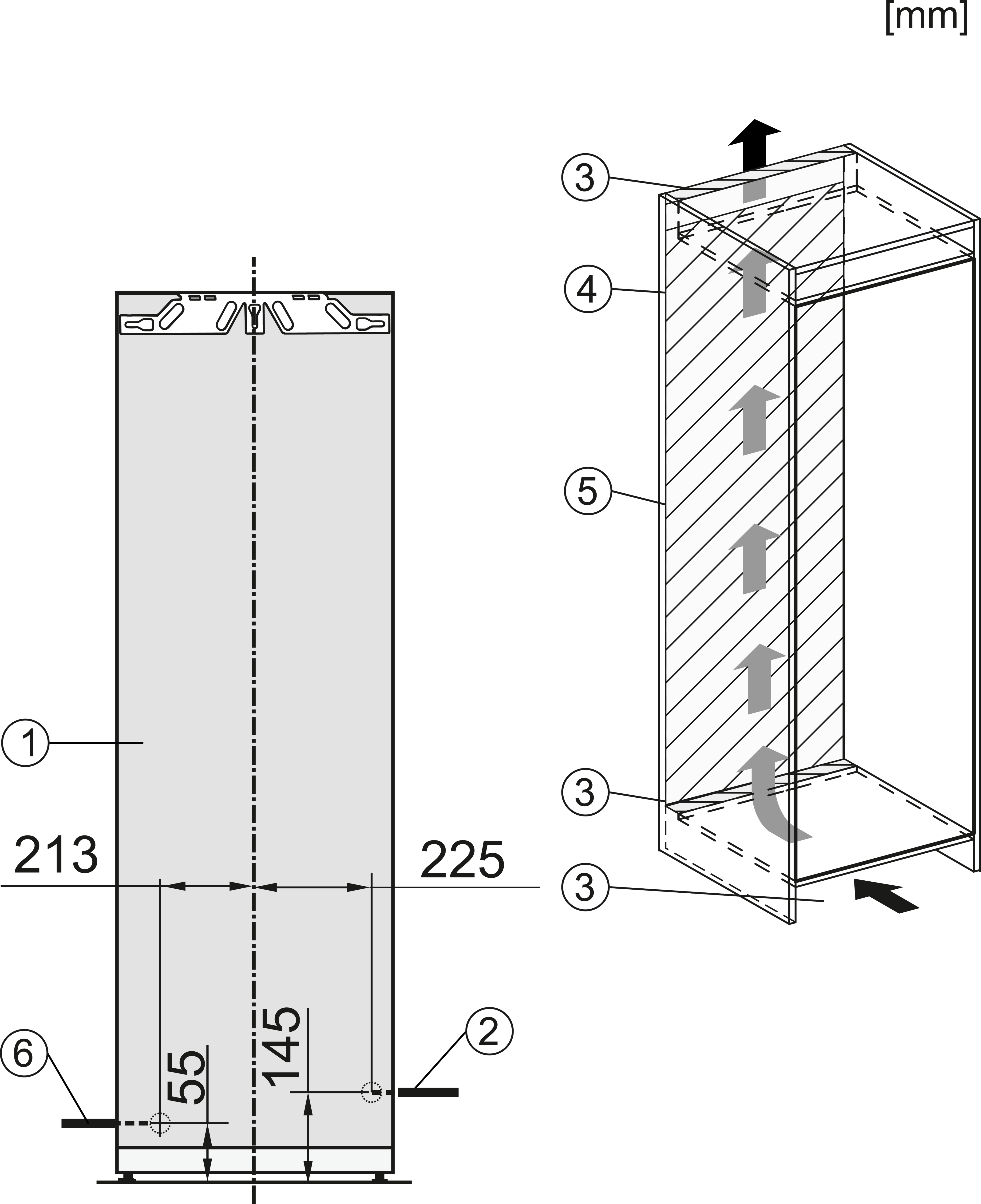 Установка встраиваемого бытового холодильника/морозильника