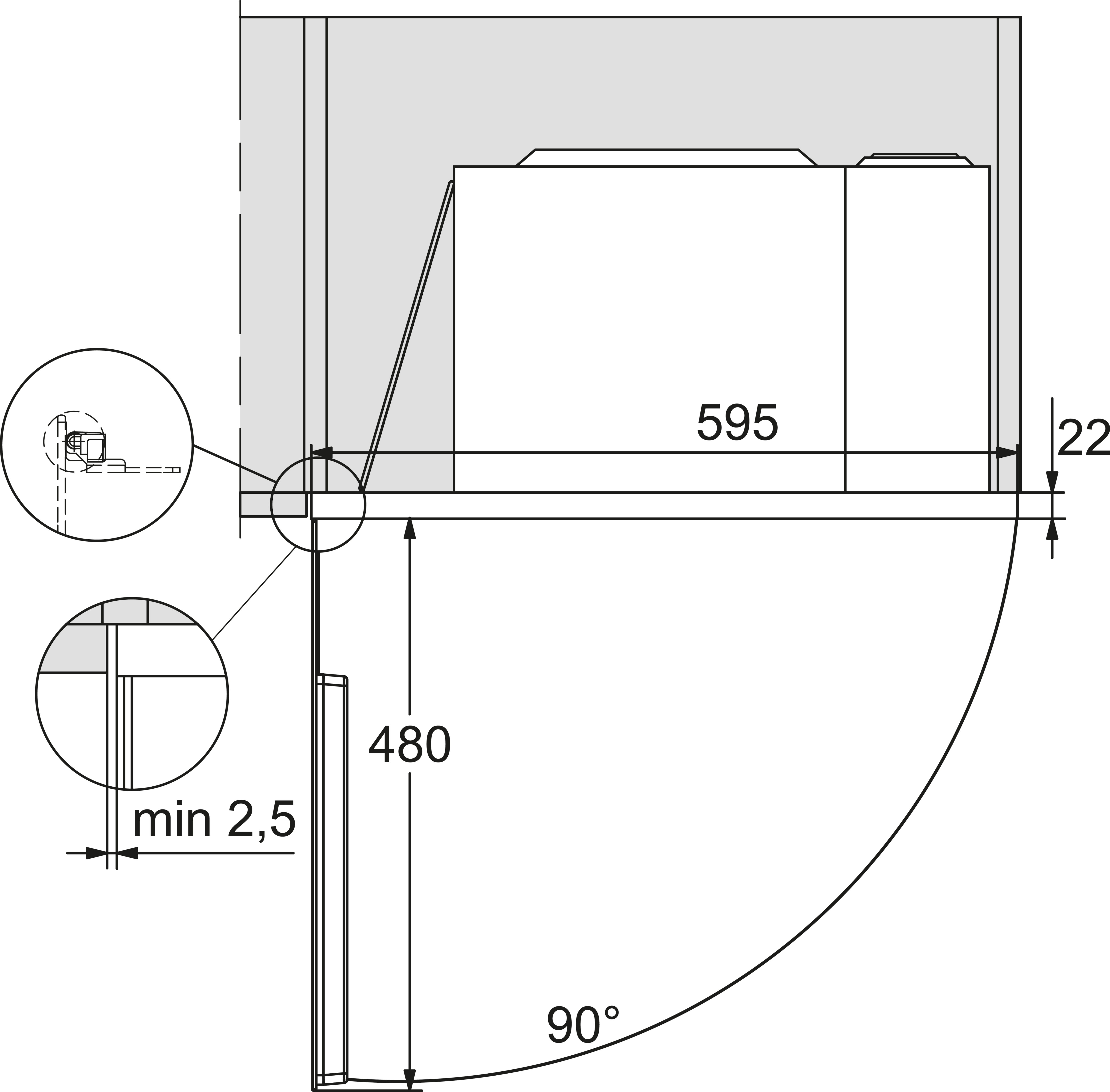 Минимальная высота ниши, мм
