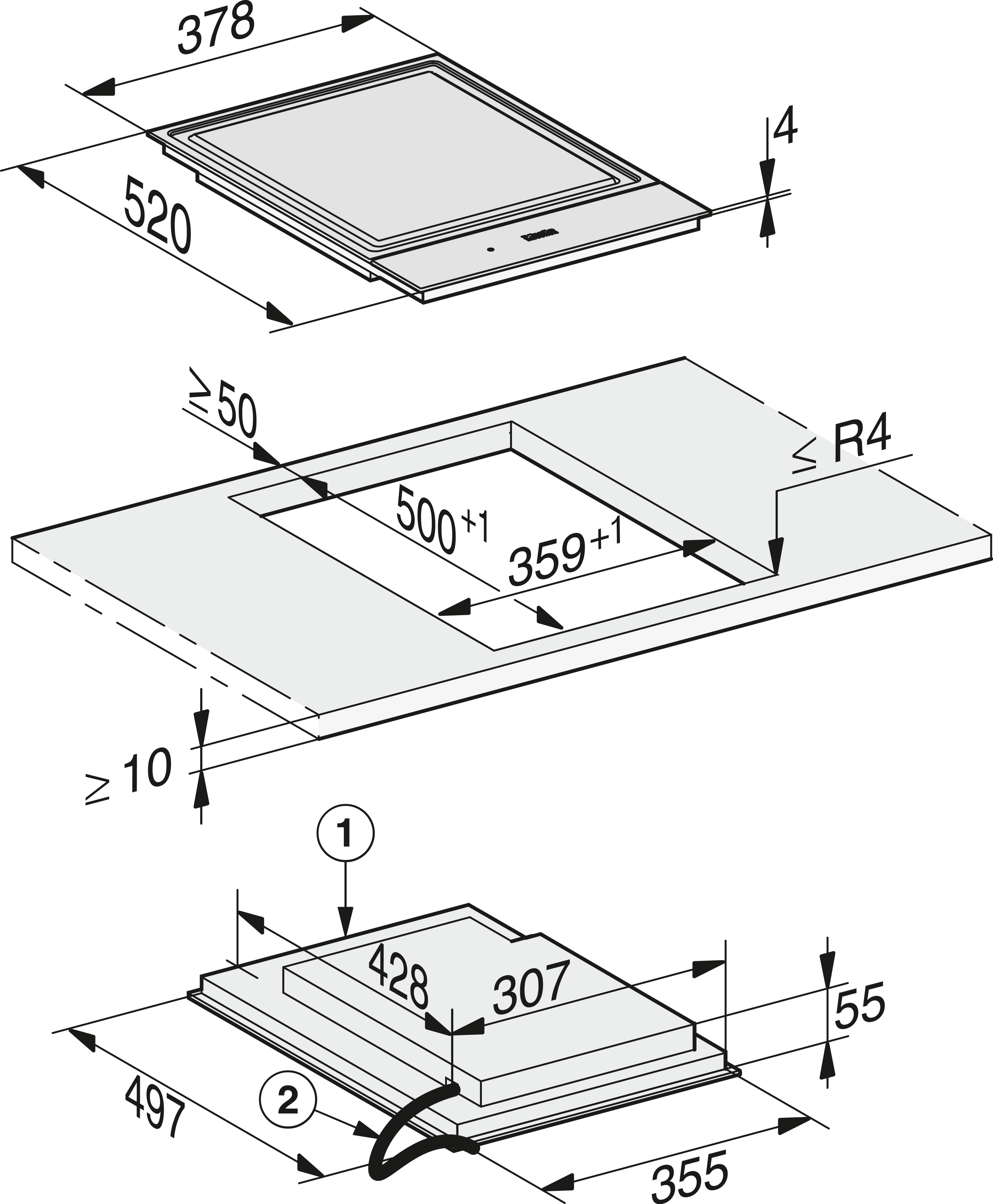 Индукционные панели конфорок со встроенной вытяжкой