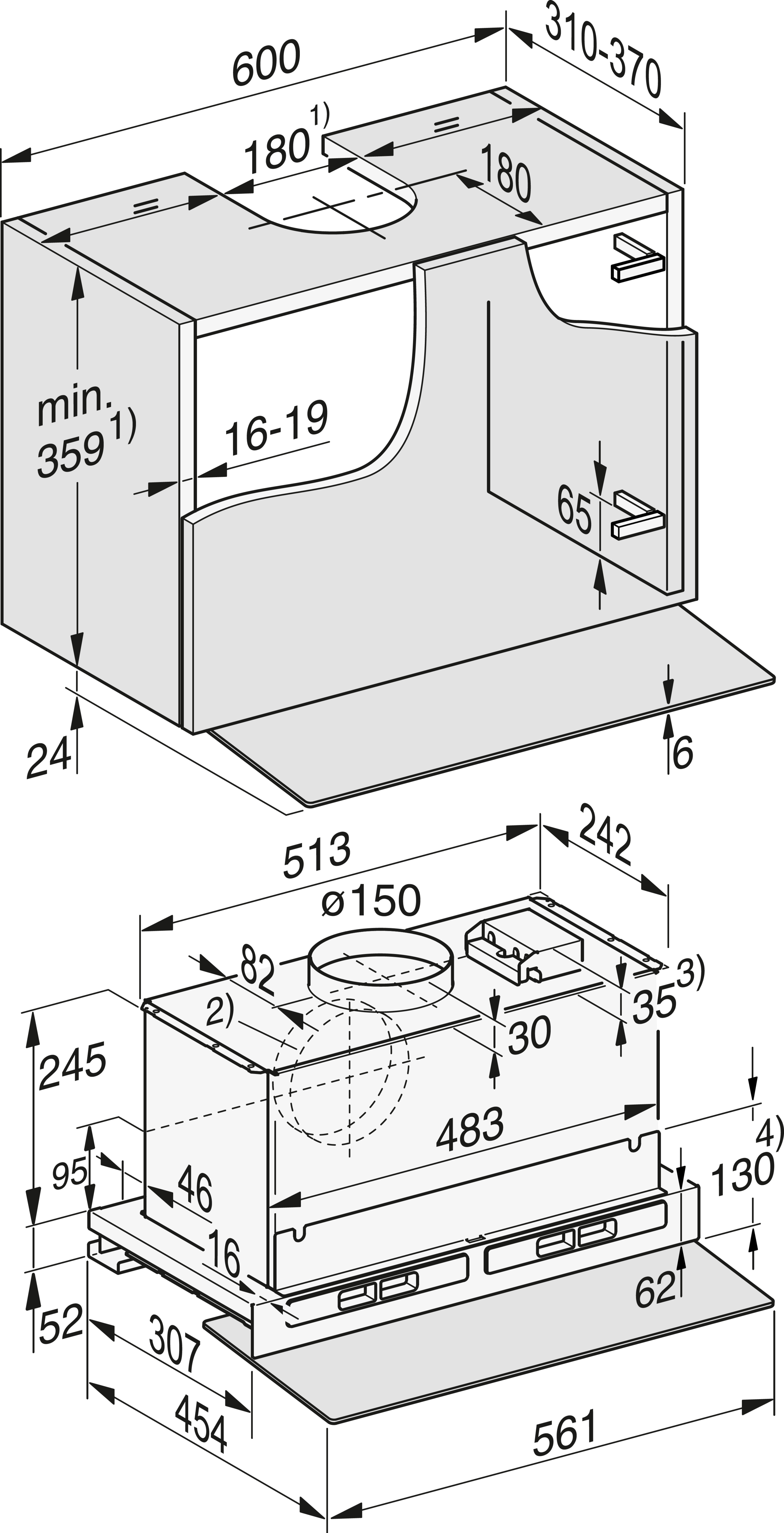 Установка встраиваемой в мебель бытовой вытяжки