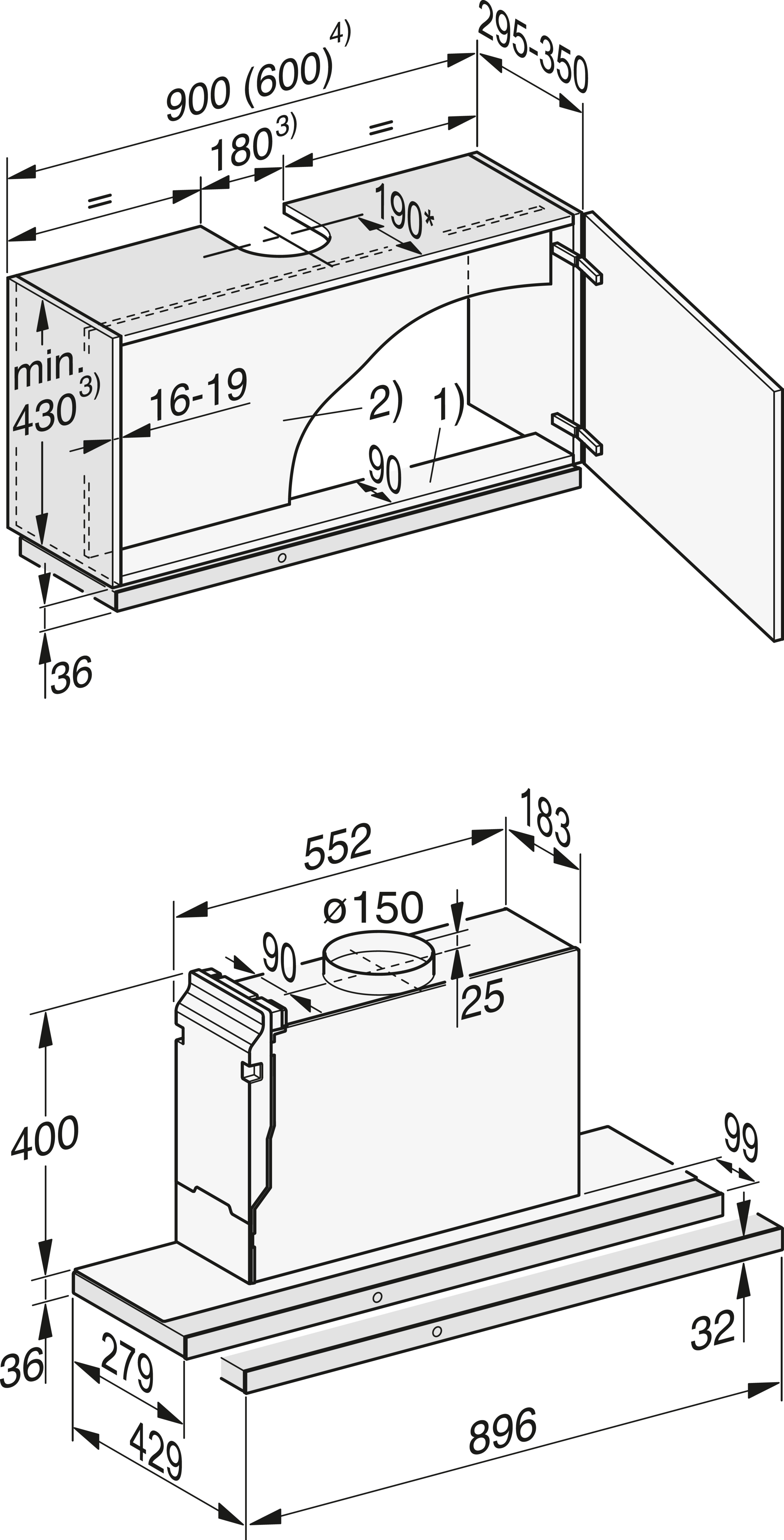 Высота корпуса вытяжки, мм